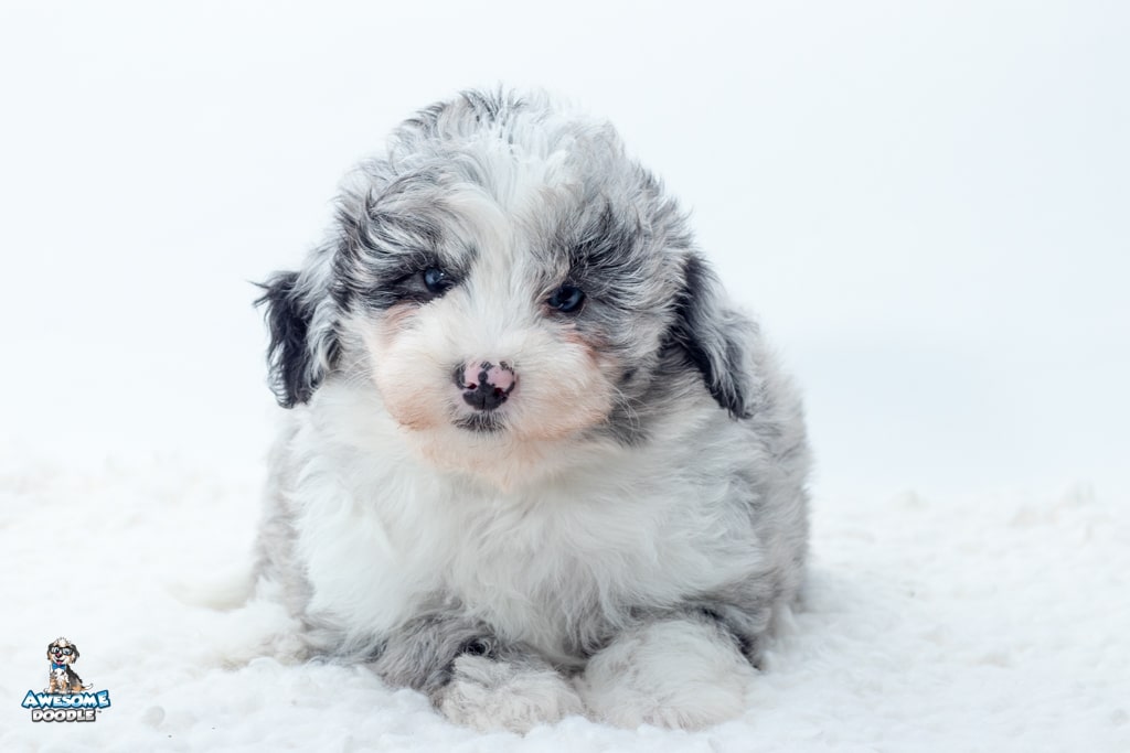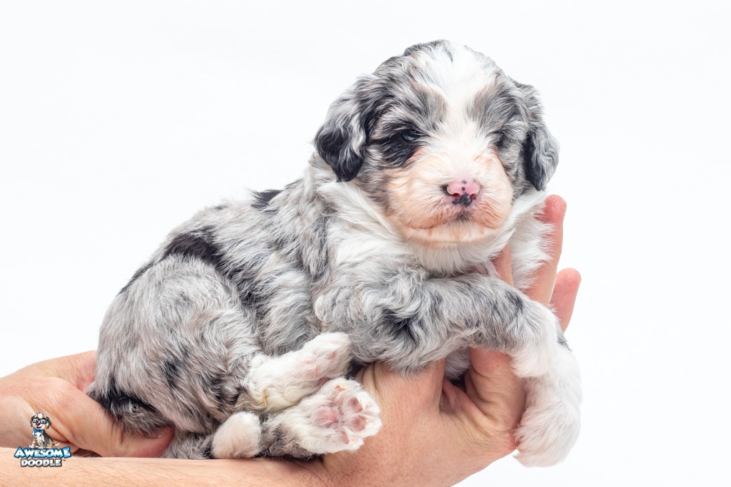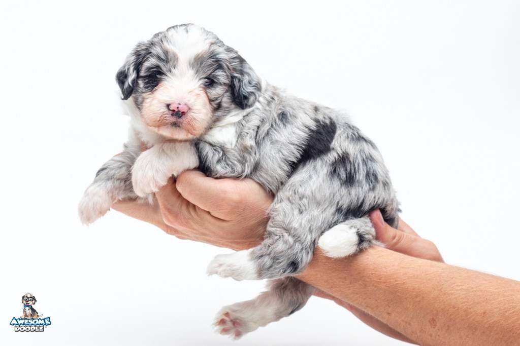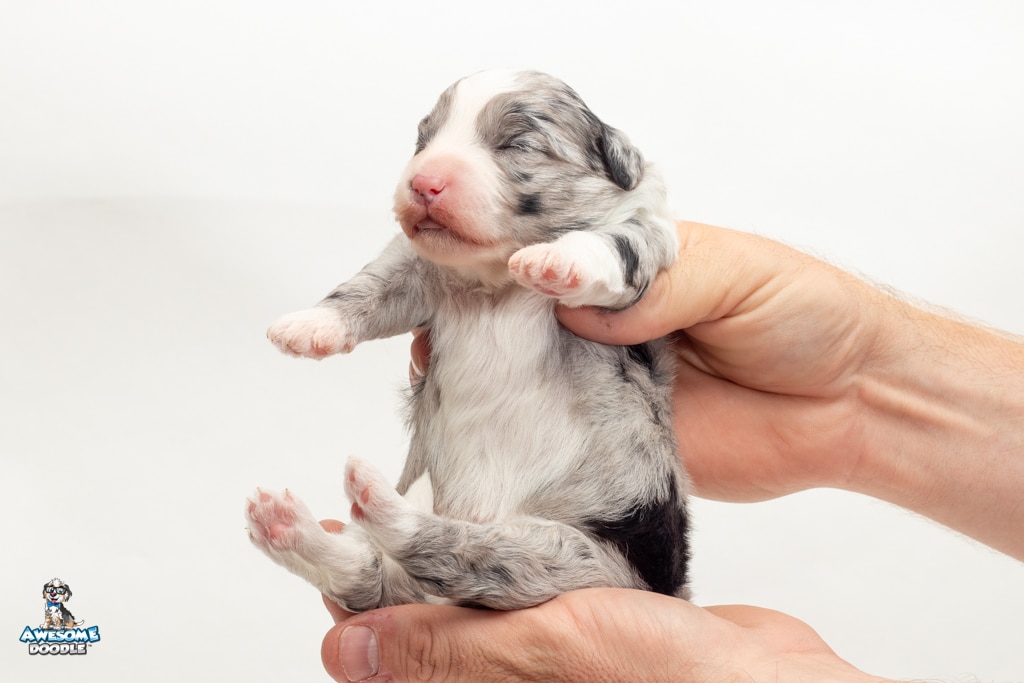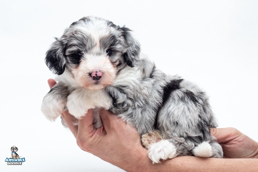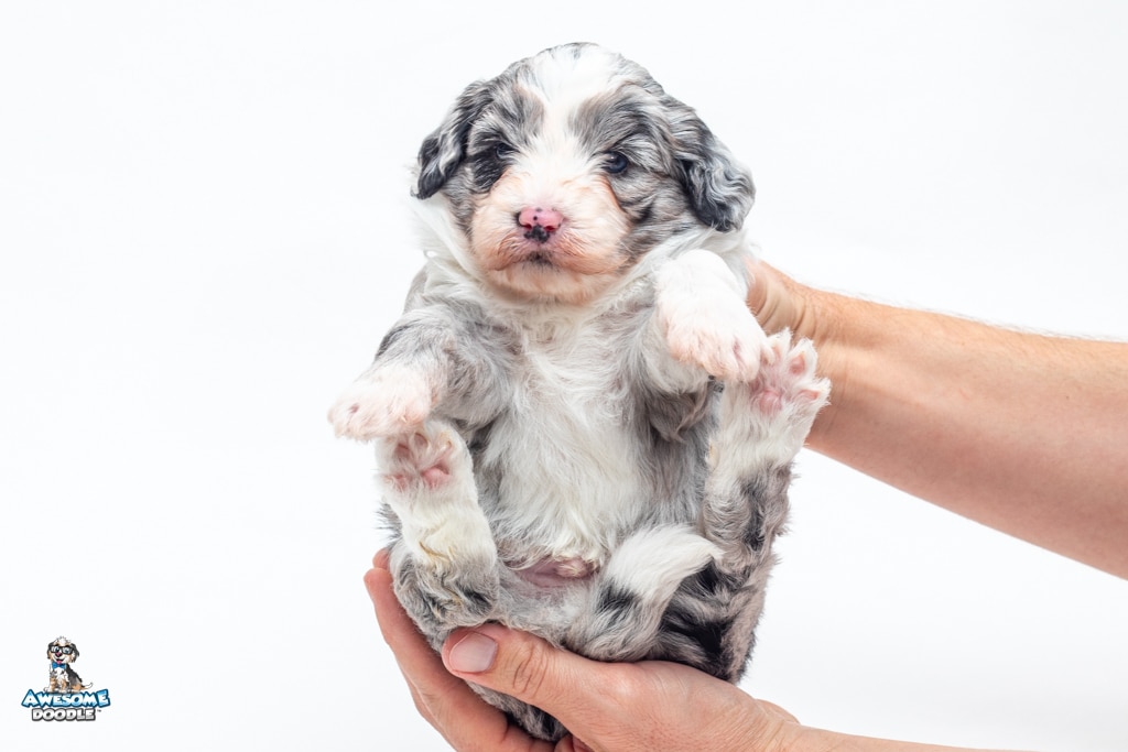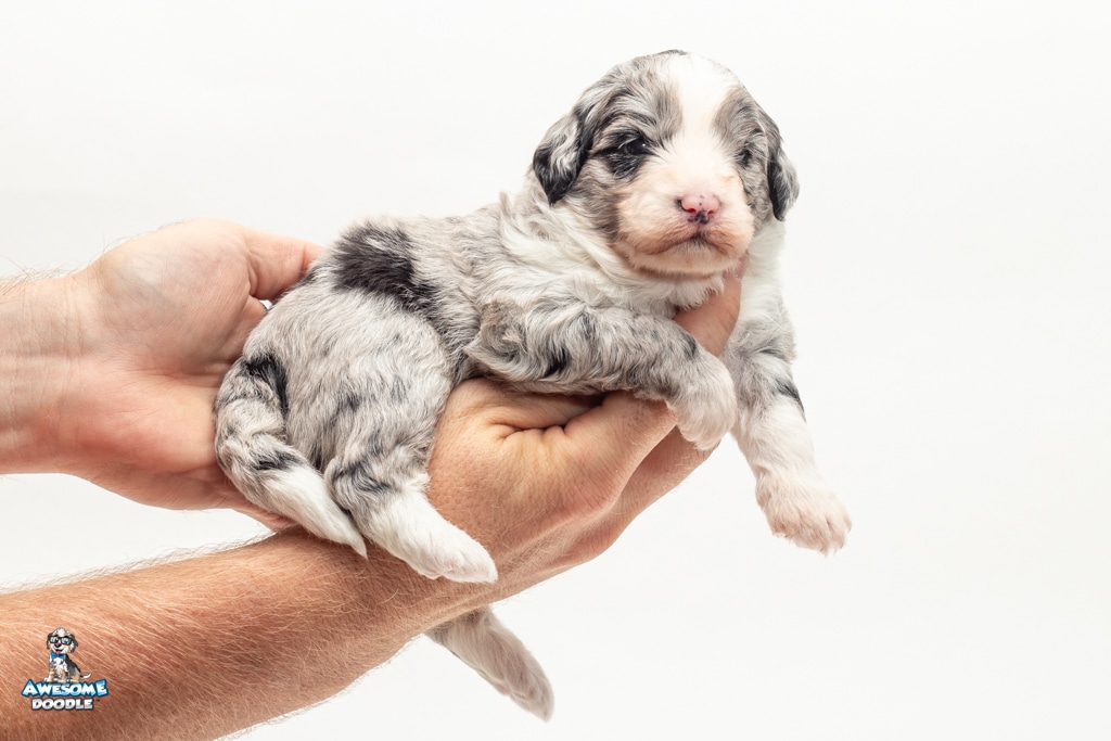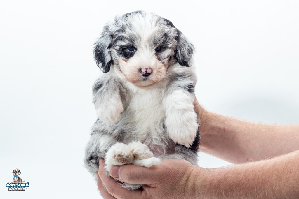 Brody is a male Blue Merle w/White F1 AussieDoodle puppy.