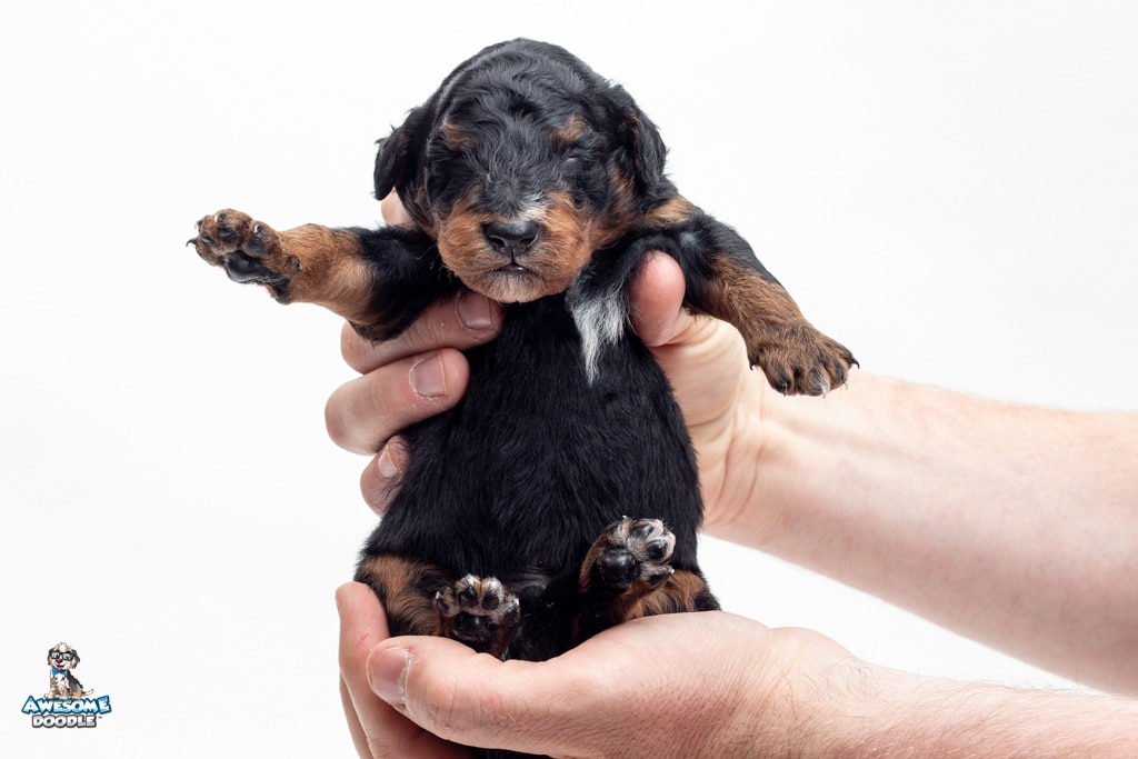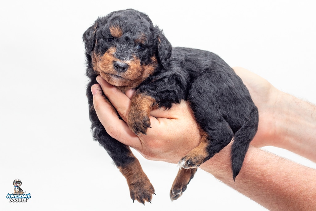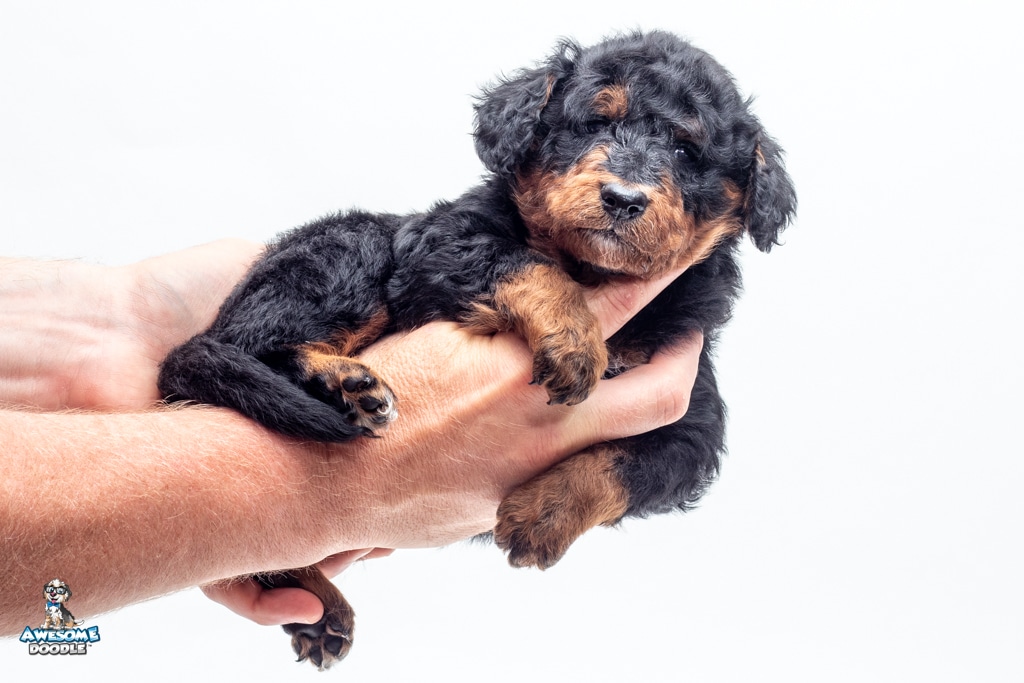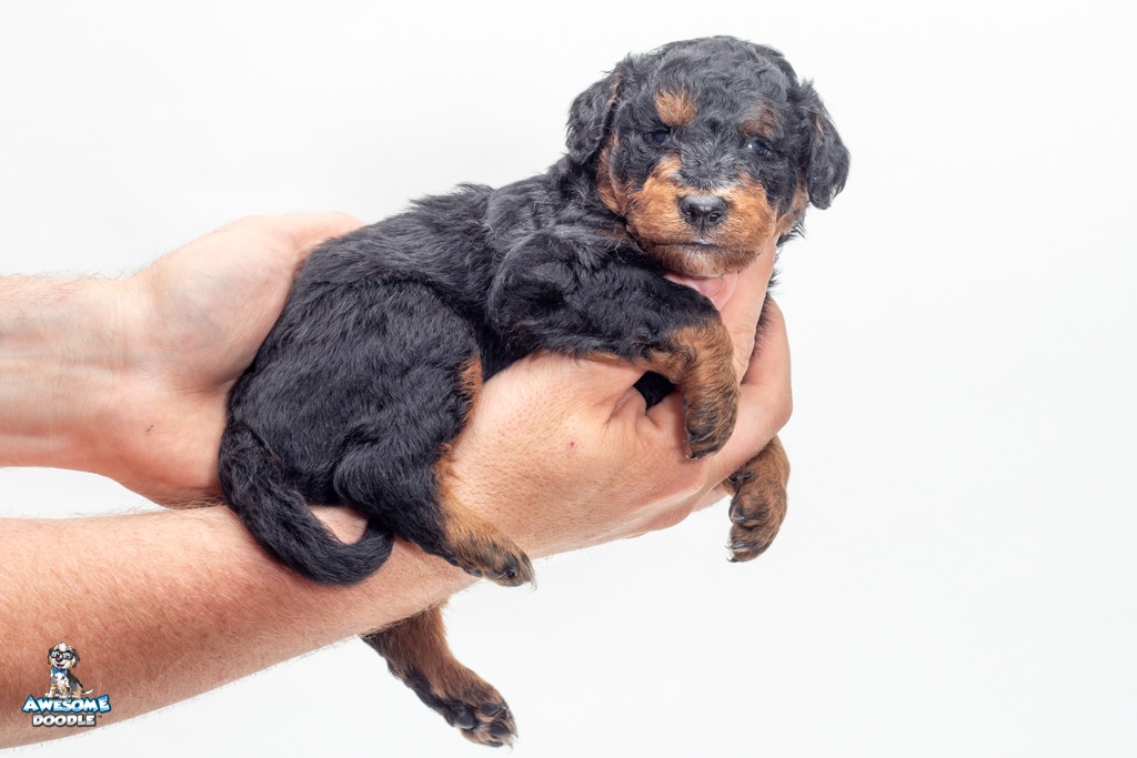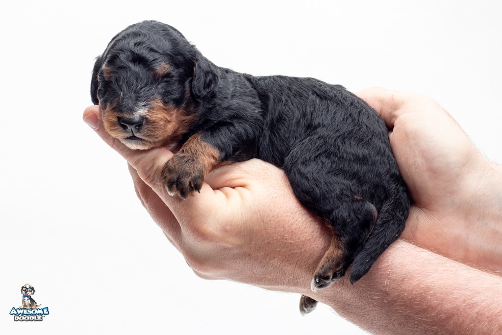 Royce is a male Black Phantom F1 AussieDoodle puppy.