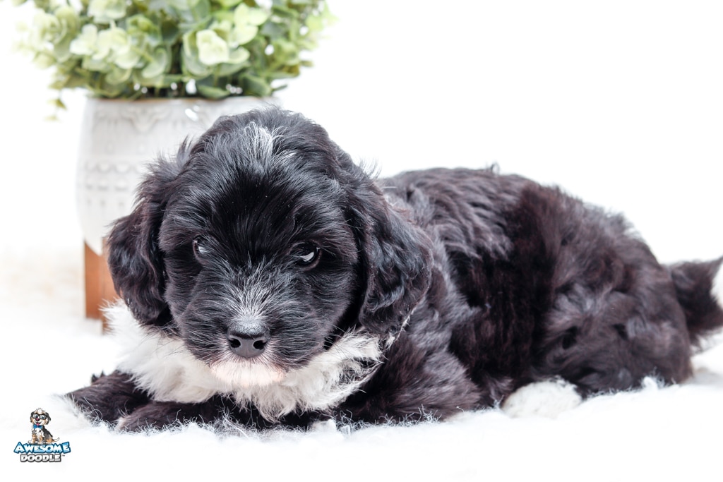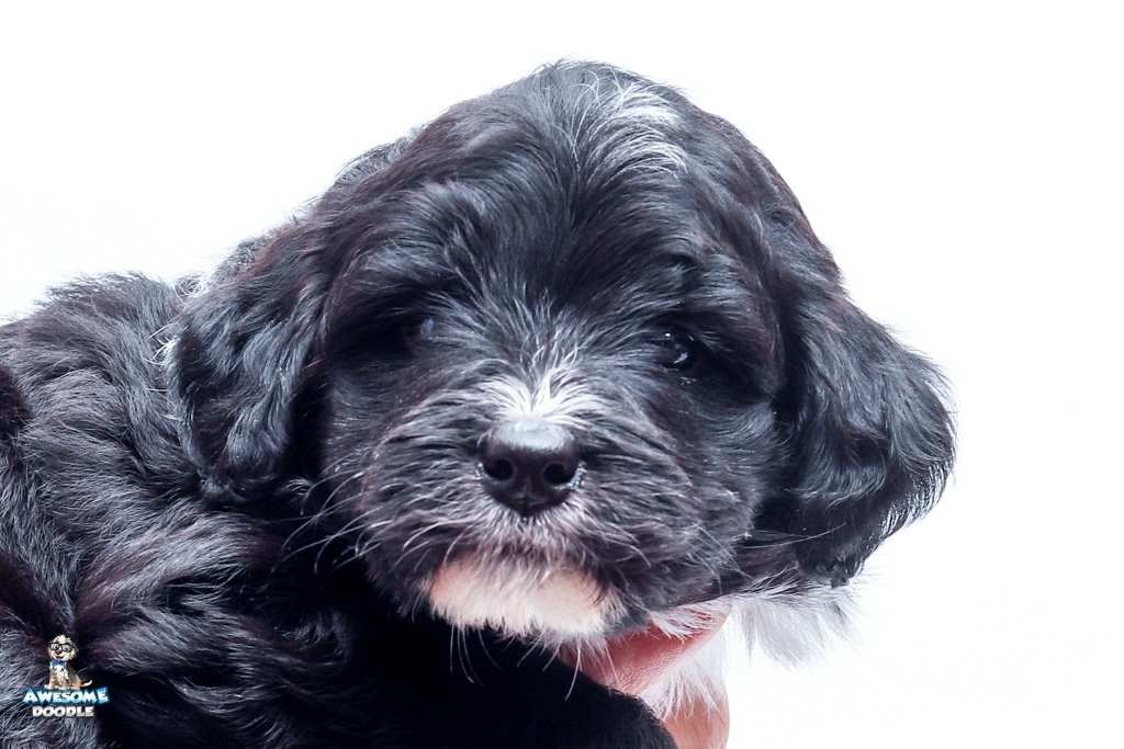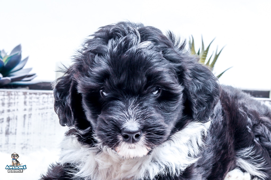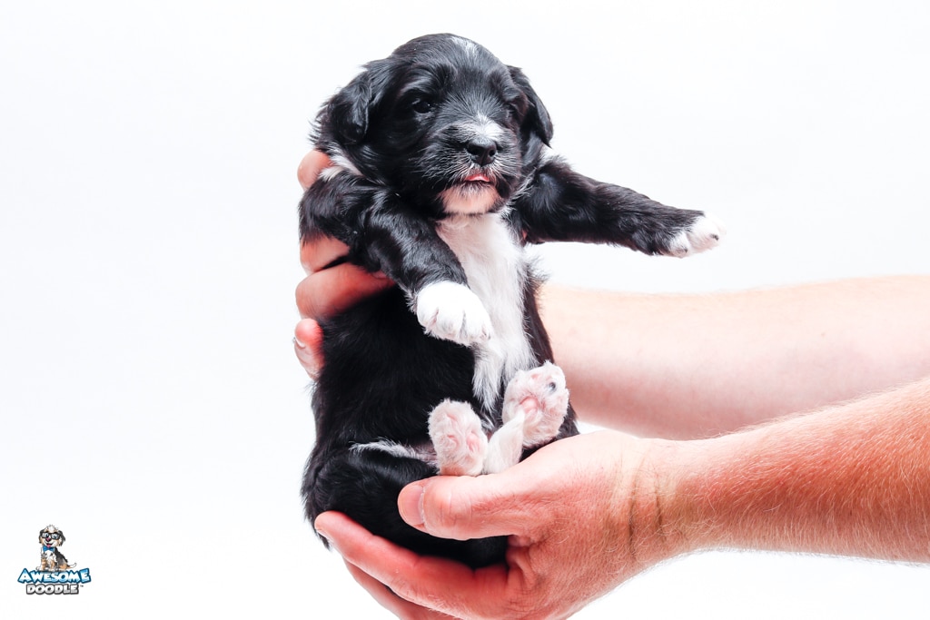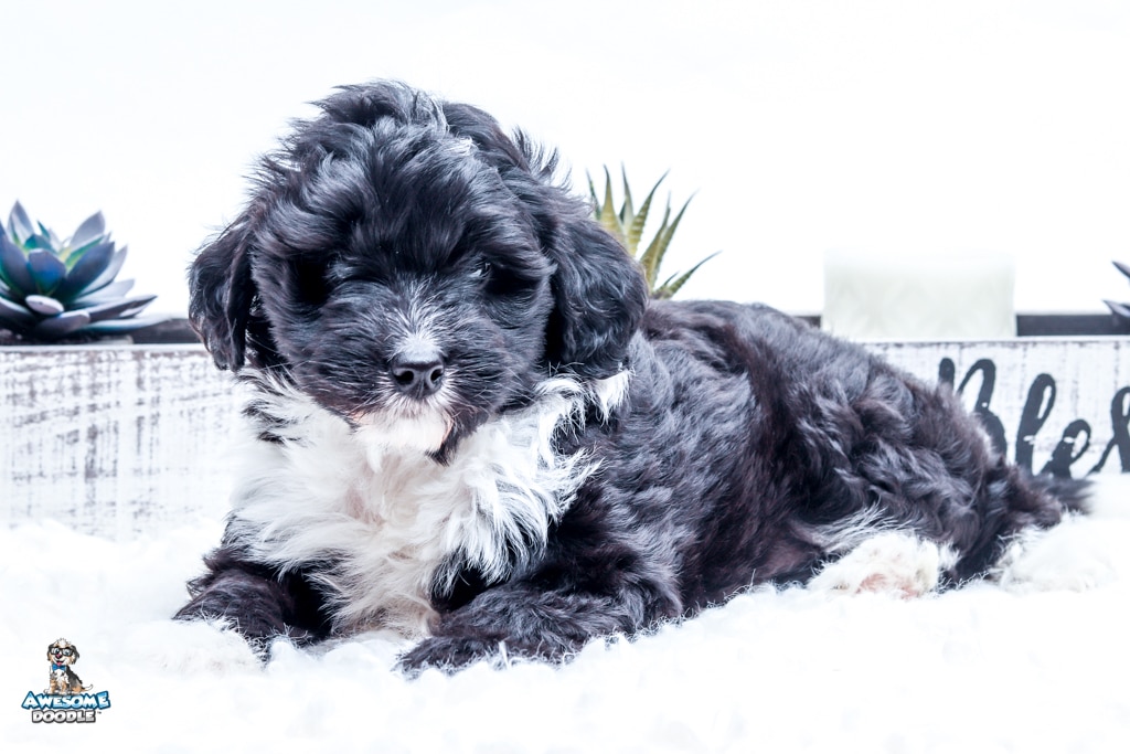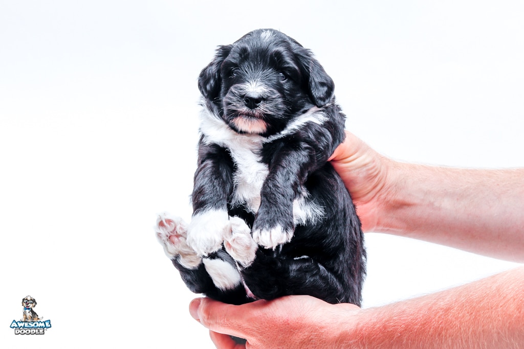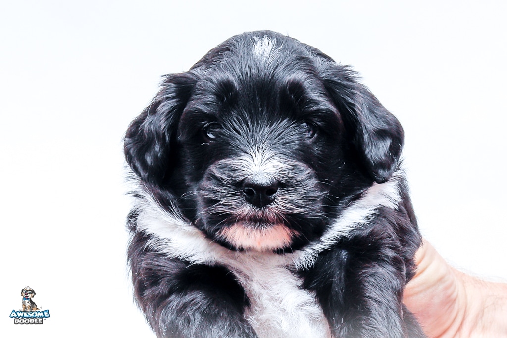 Sadie is a female Black Bi-Color F1 AussieDoodle puppy.
