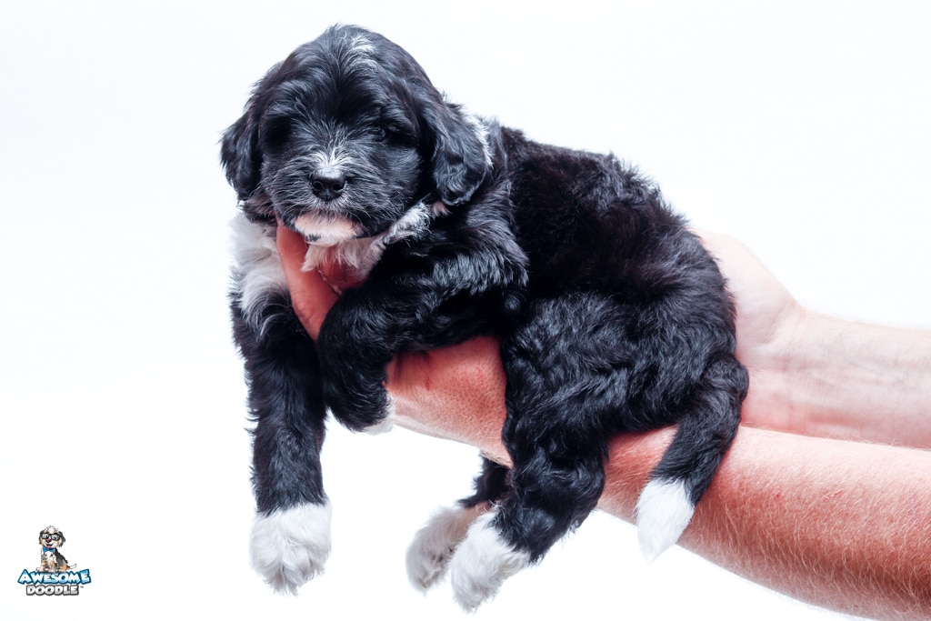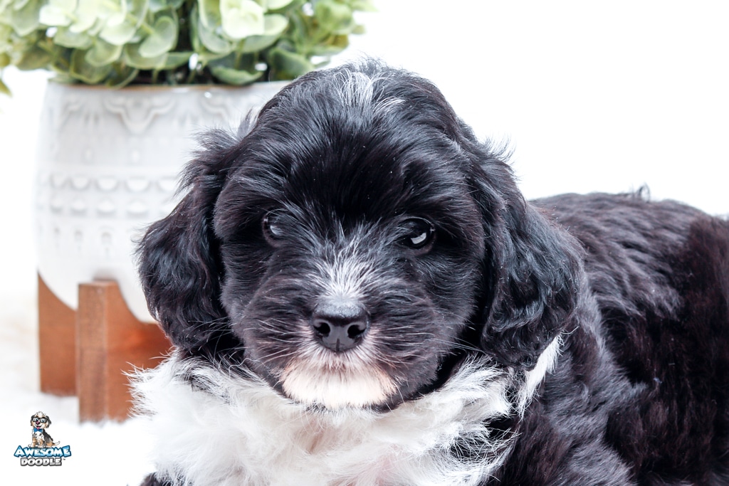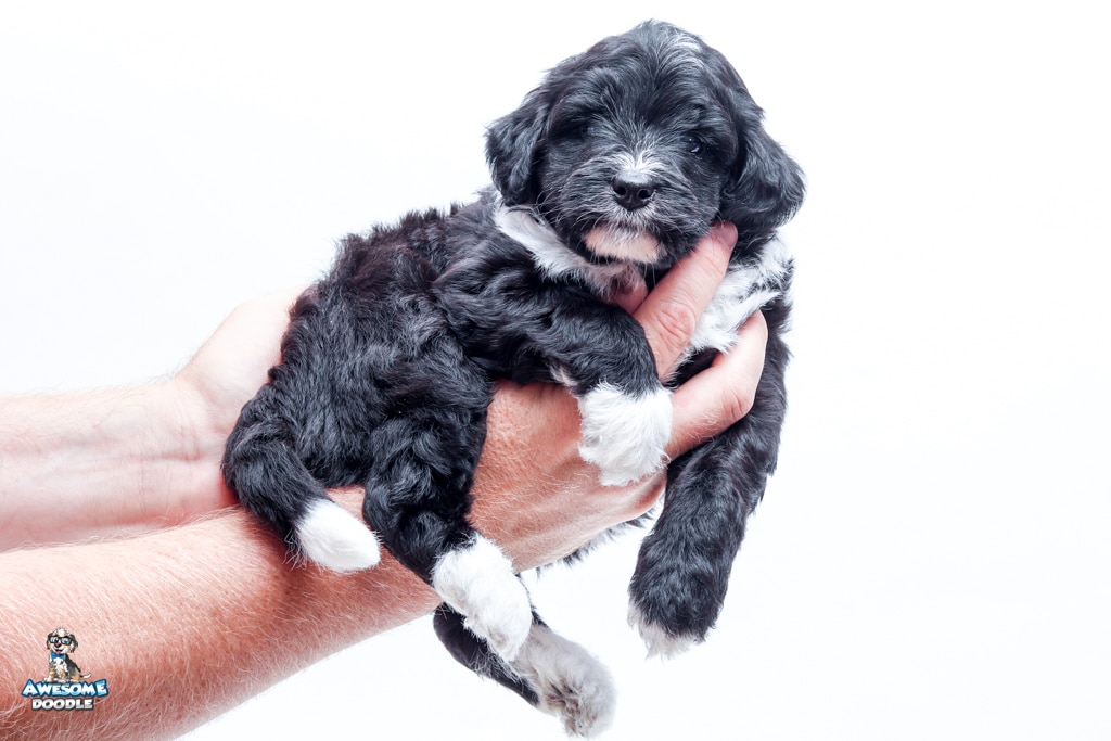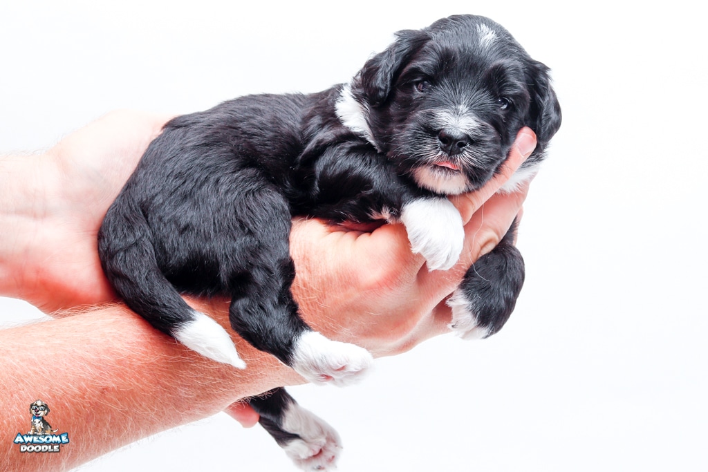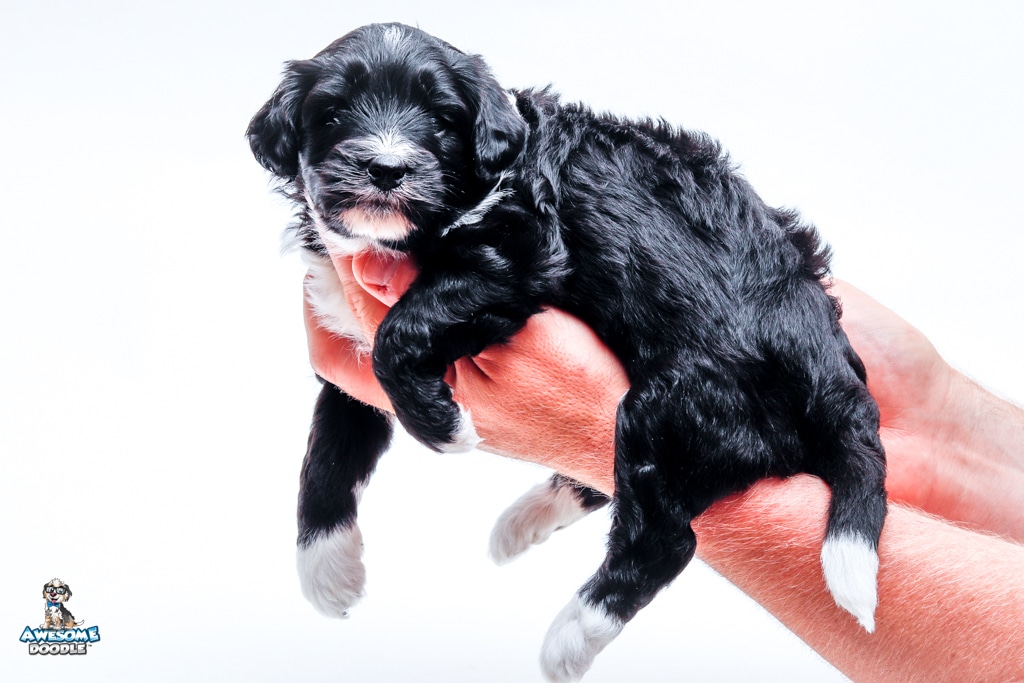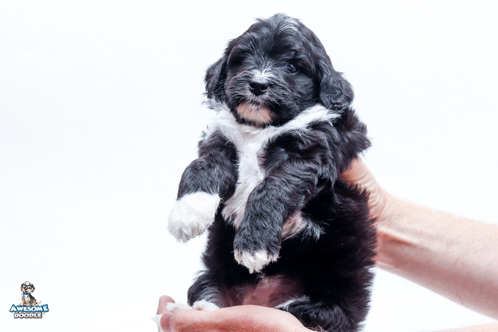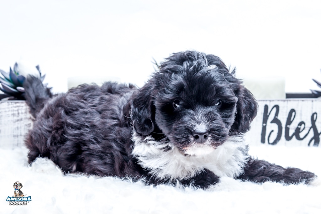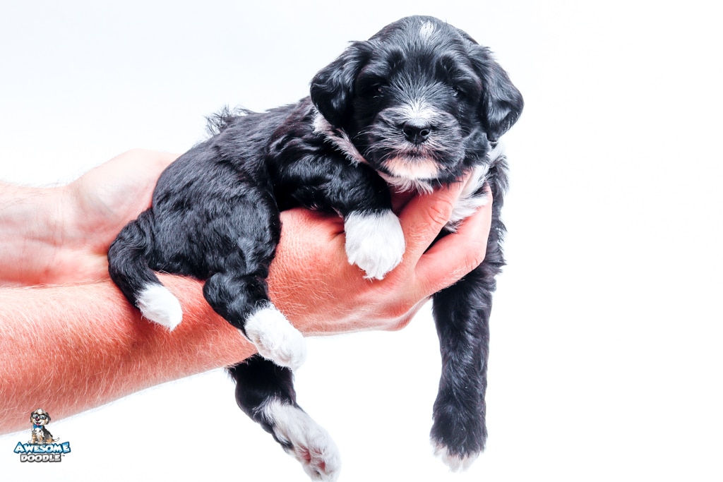 Sadie is a female Black Bi-Color F1 AussieDoodle puppy.