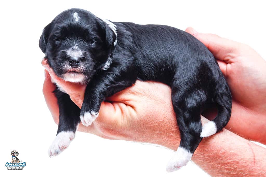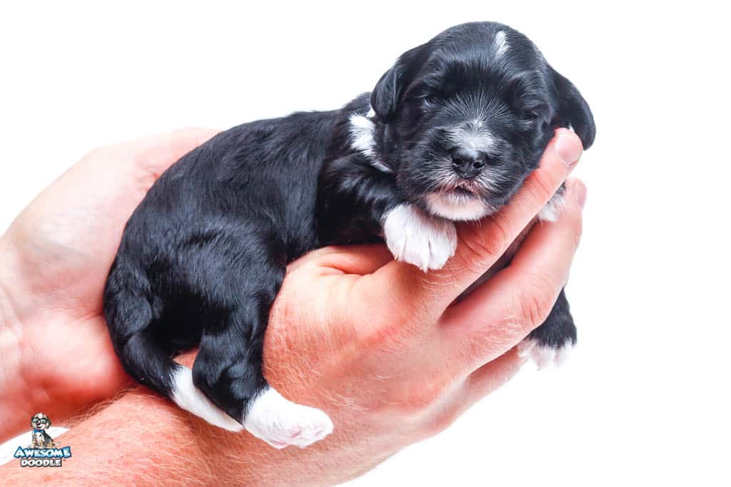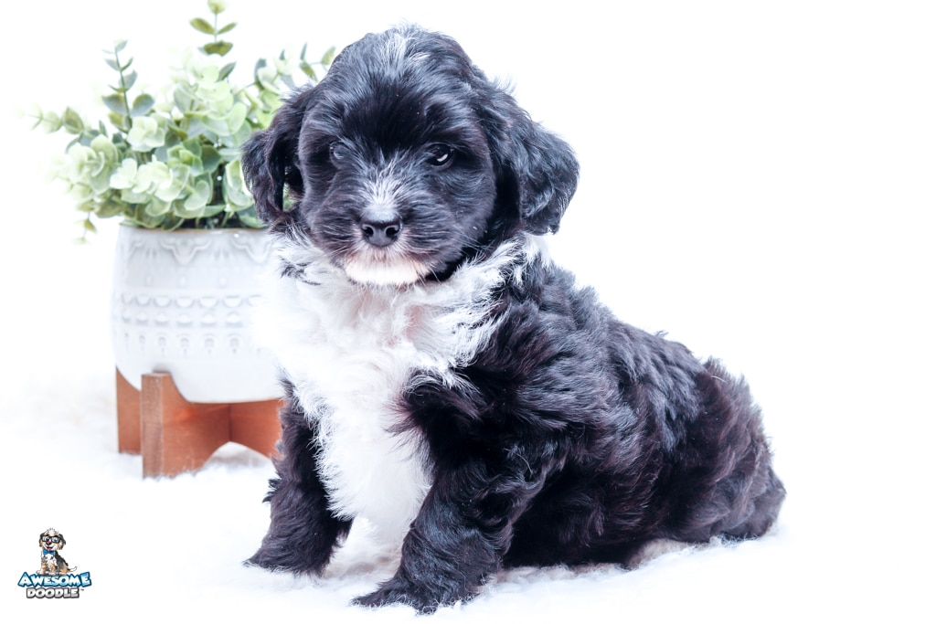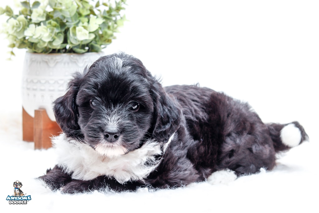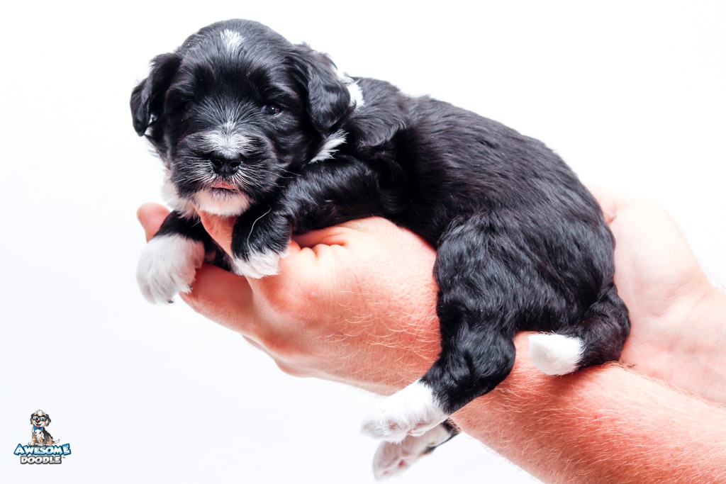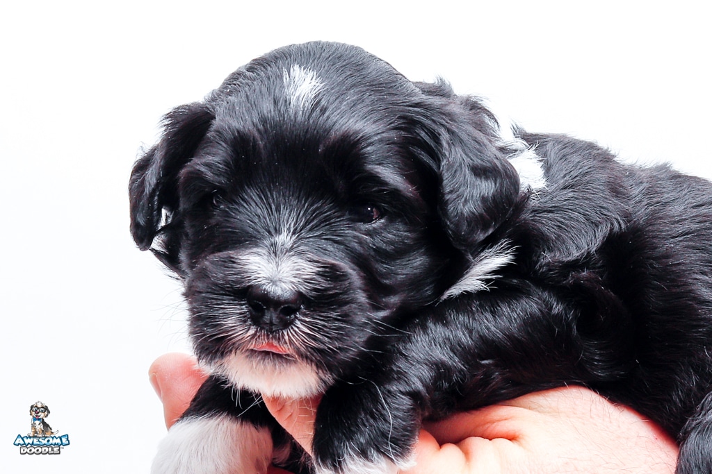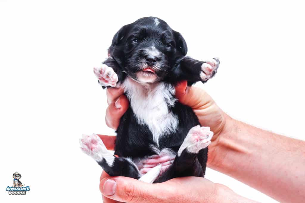 Sadie is a female Black Bi-Color F1 AussieDoodle puppy.