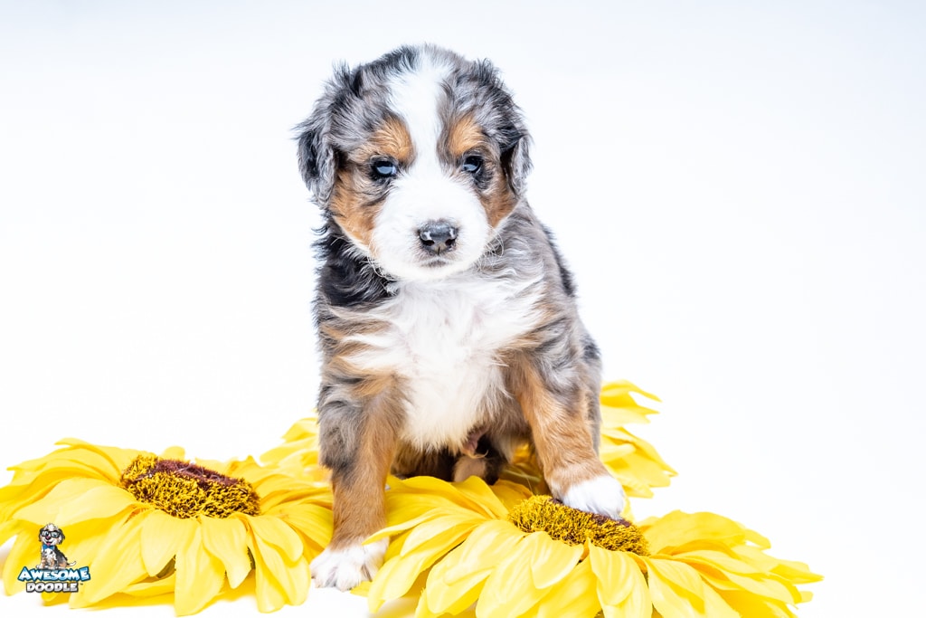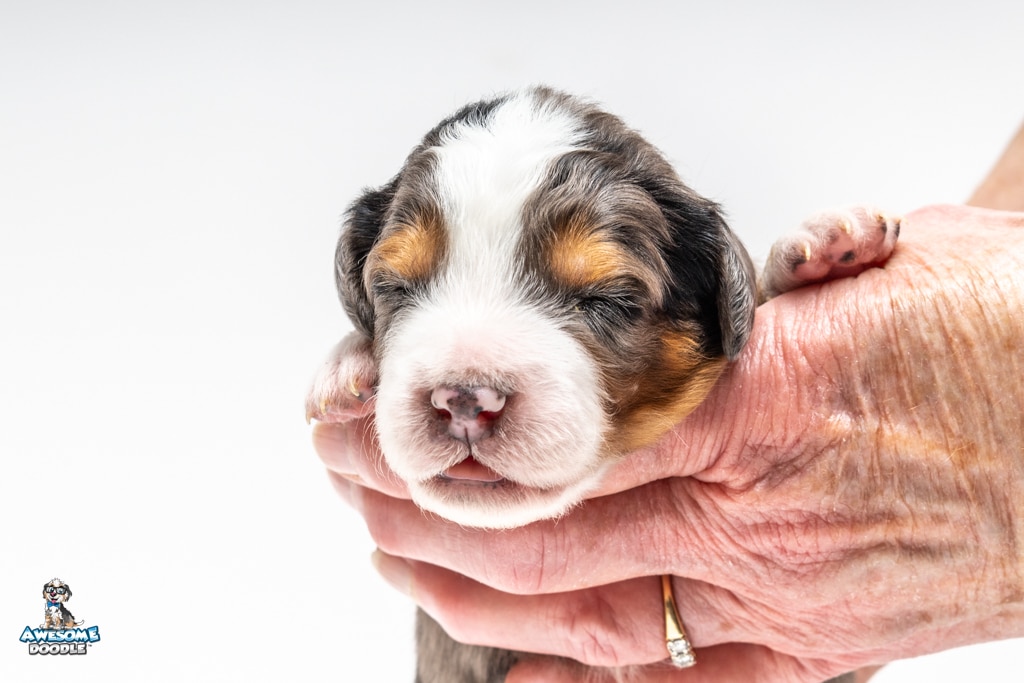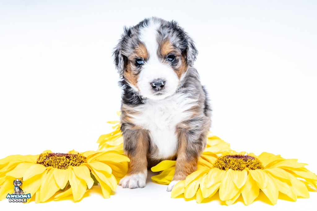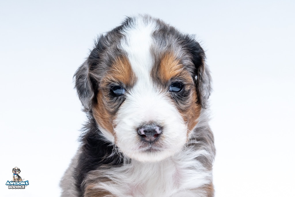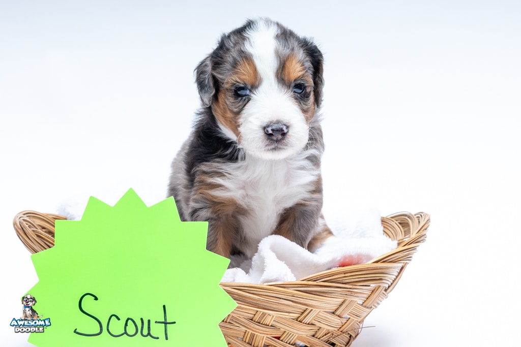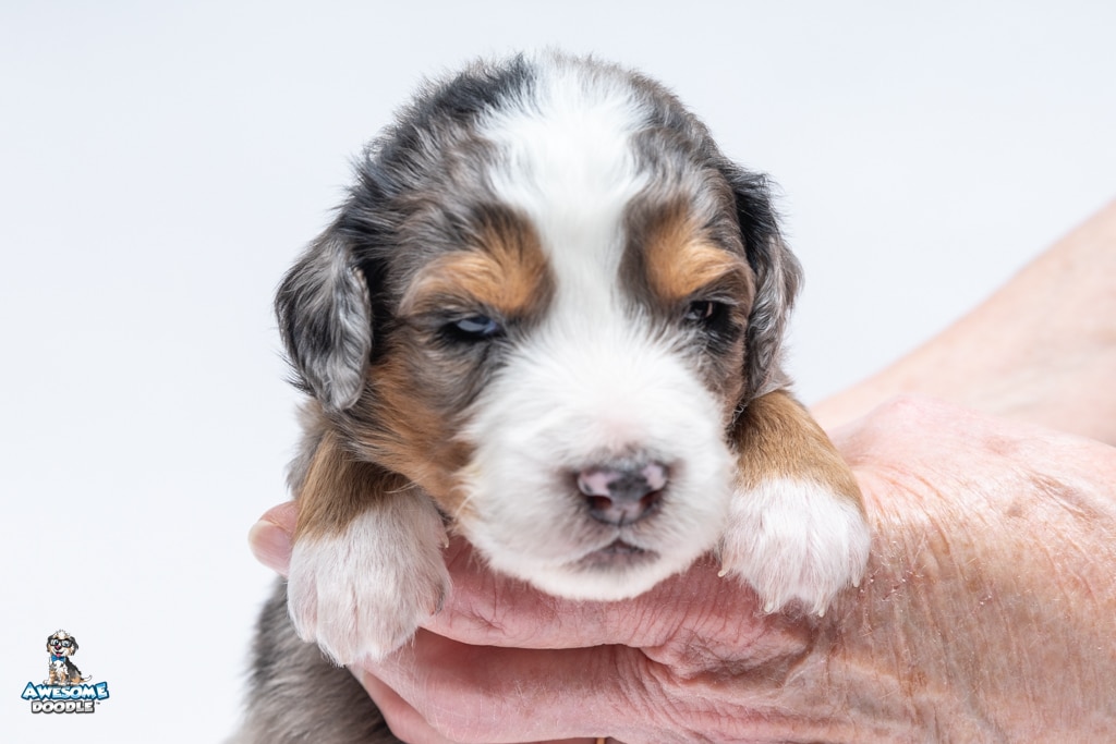 Scout is a male Blue Merle w/ White & Copper F1 AussieDoodle puppy.