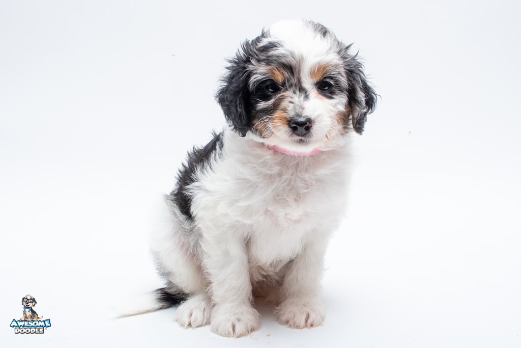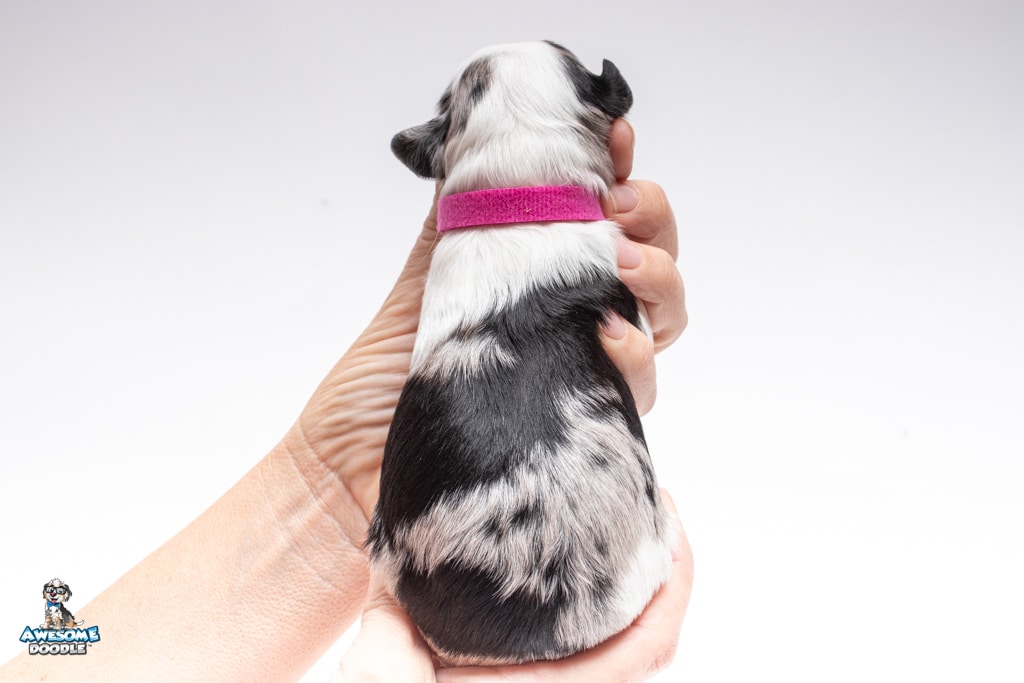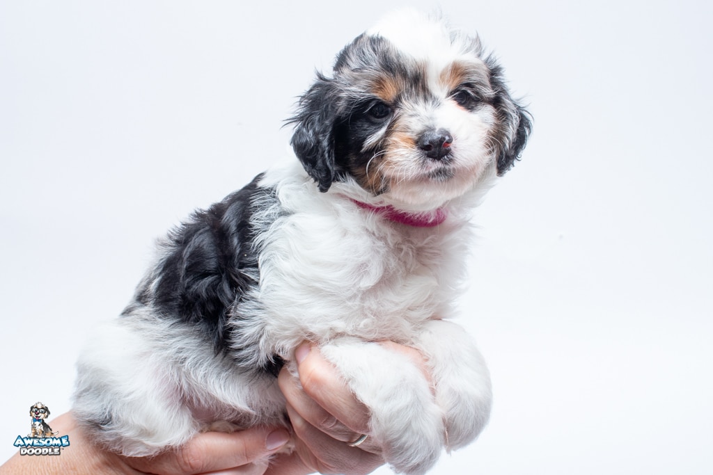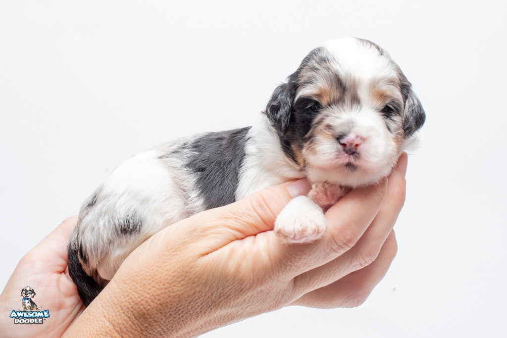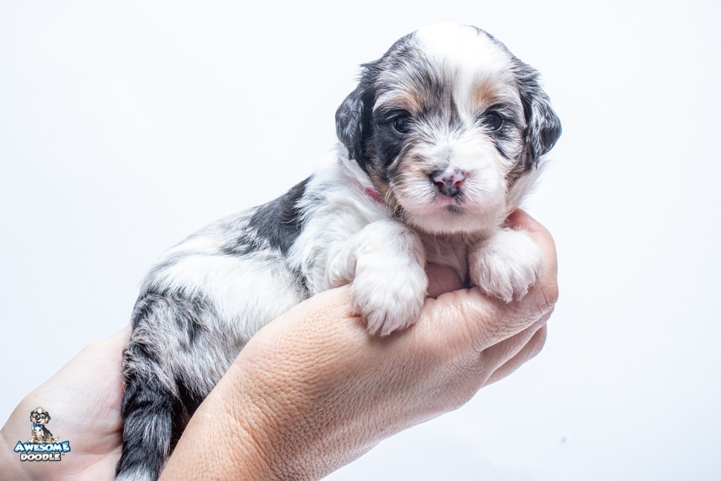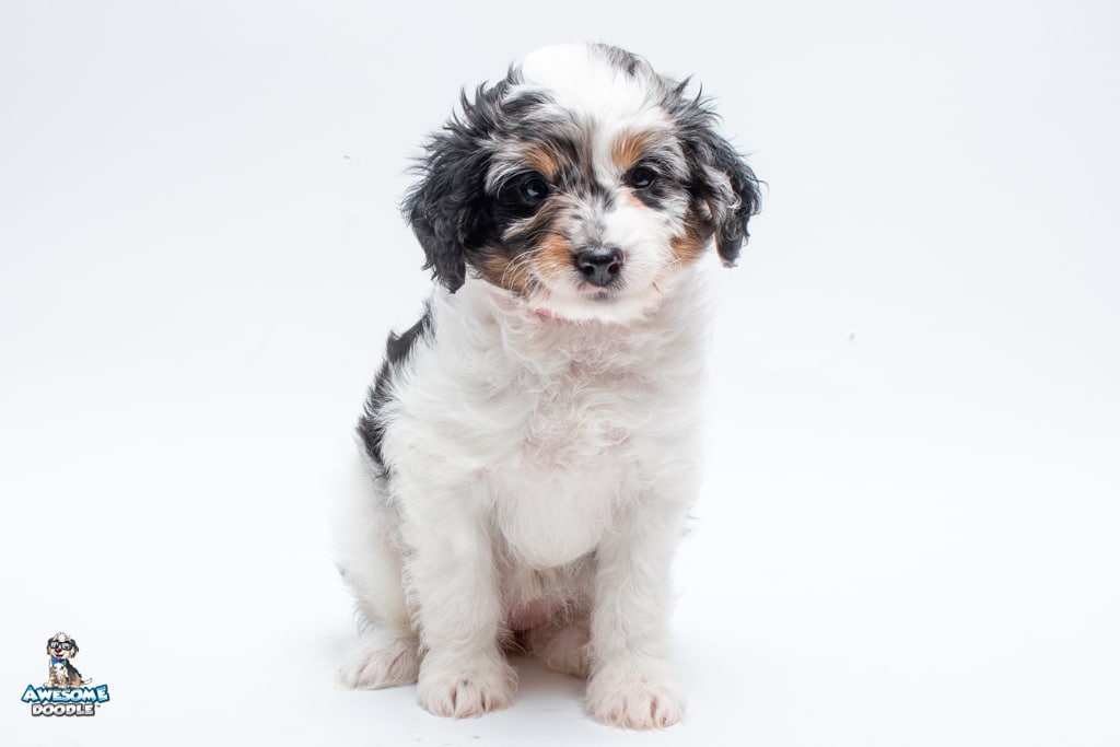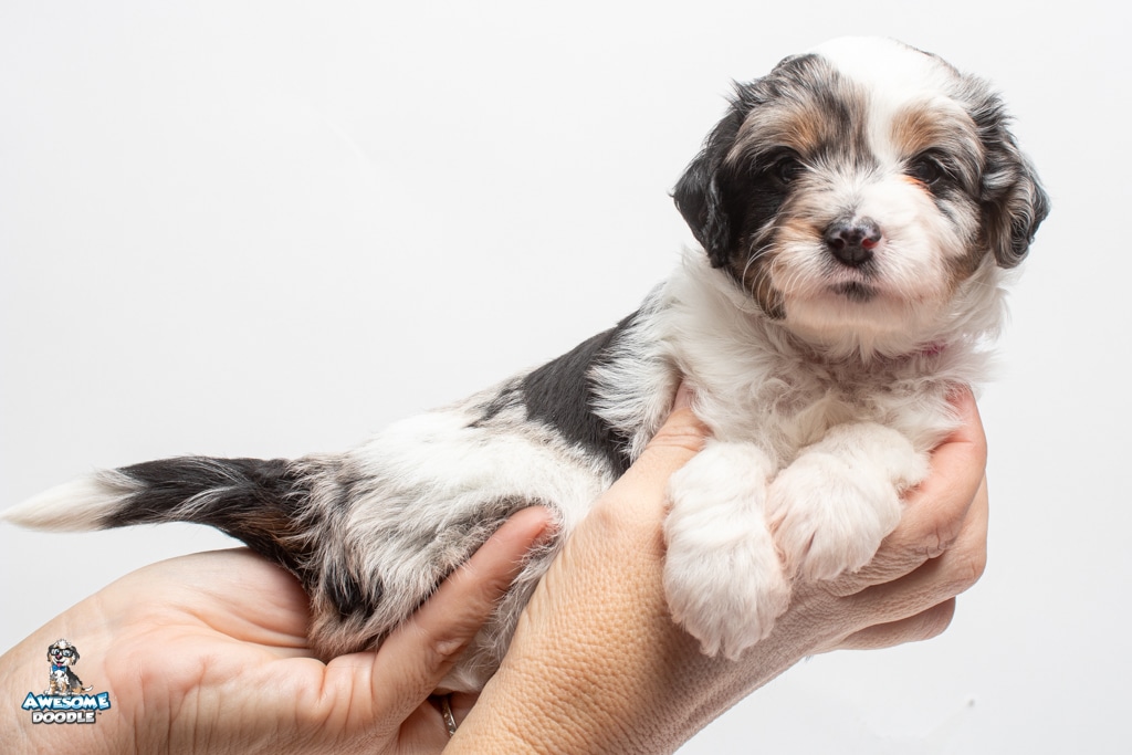 Zoey is a female Blue Merle w/ White & Copper F1 AussieDoodle puppy.