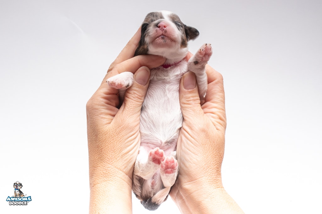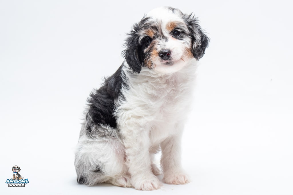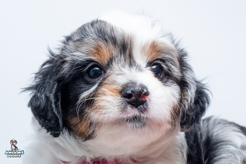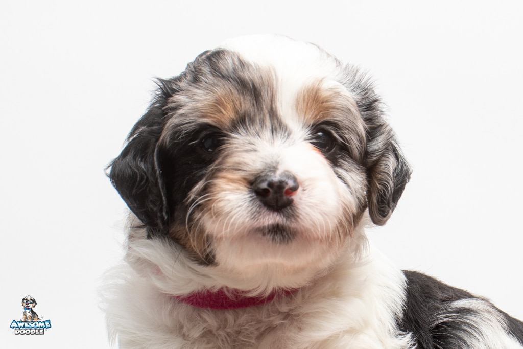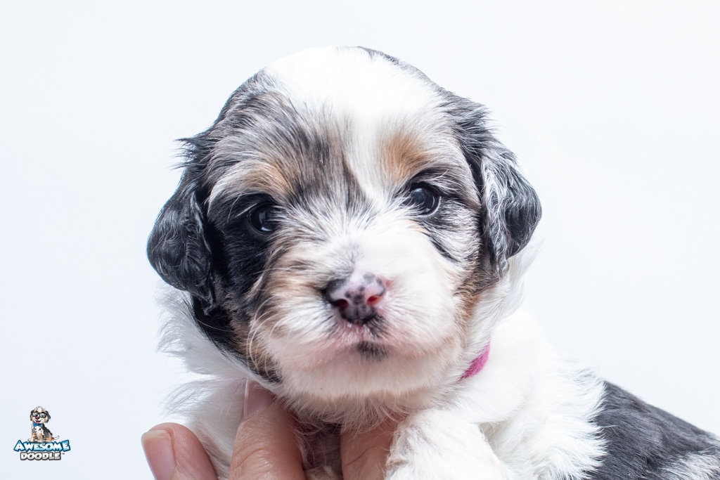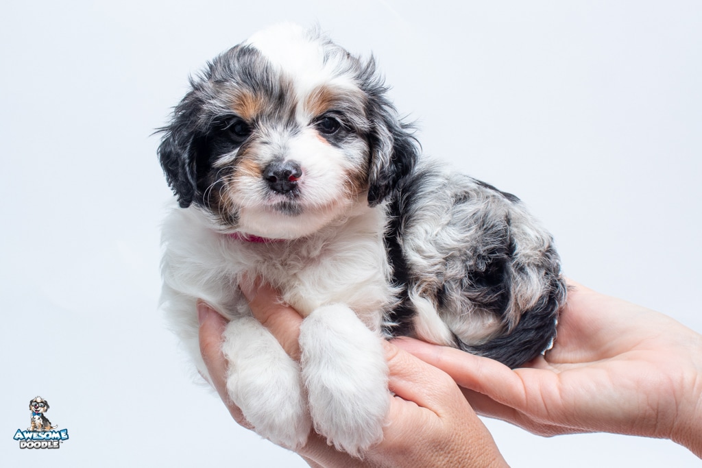 Zoey is a female Blue Merle w/ White & Copper F1 AussieDoodle puppy.