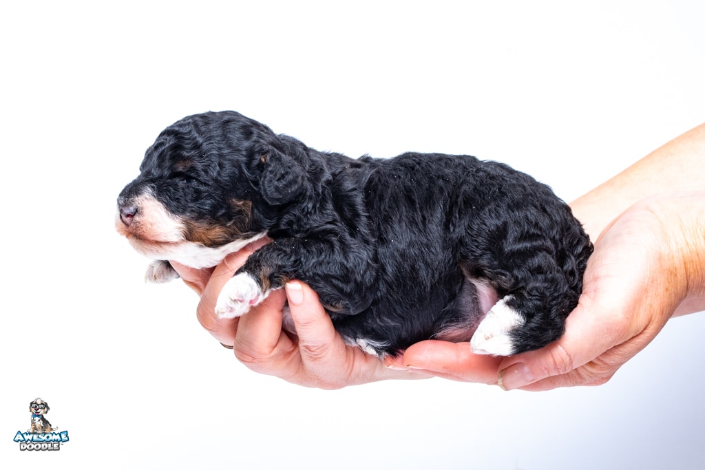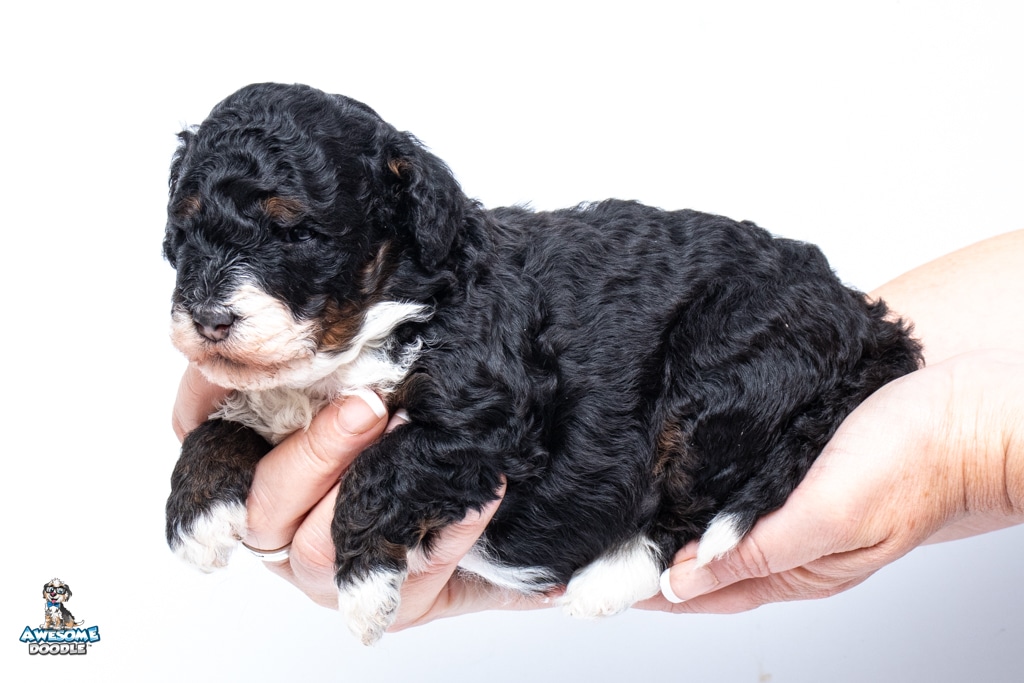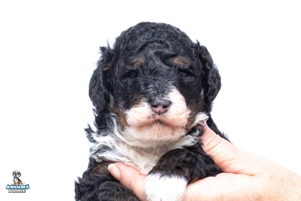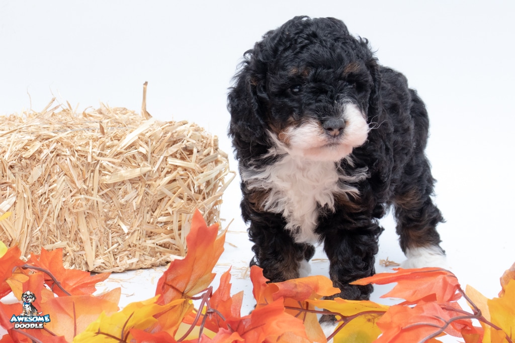 Truffles is a female Black Tri-Color F1b BerneDoodle puppy.