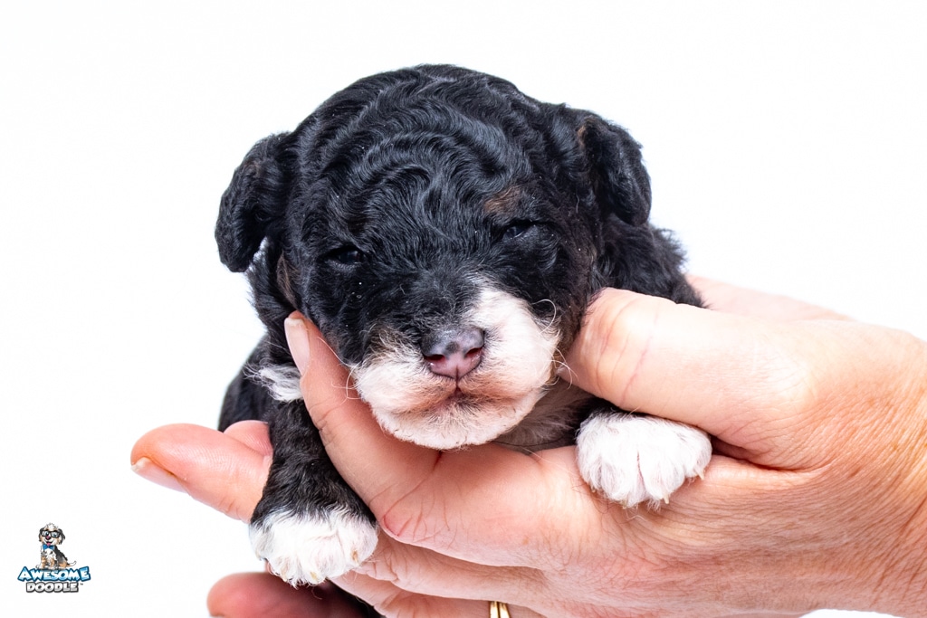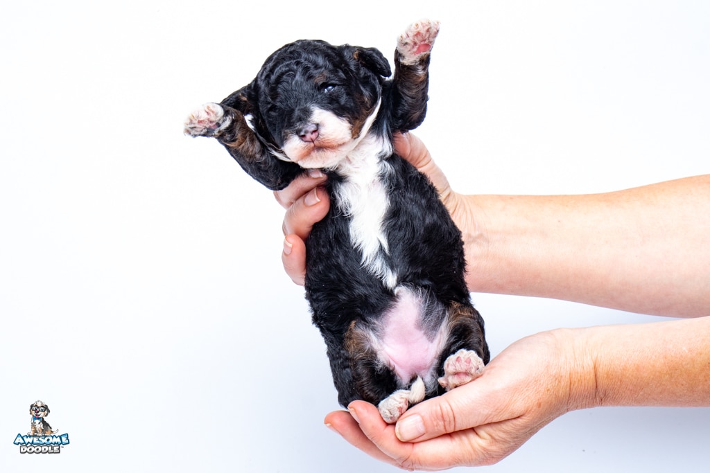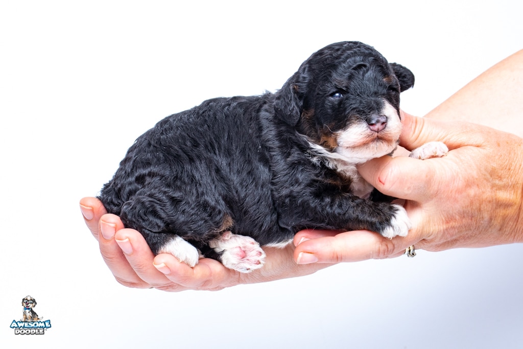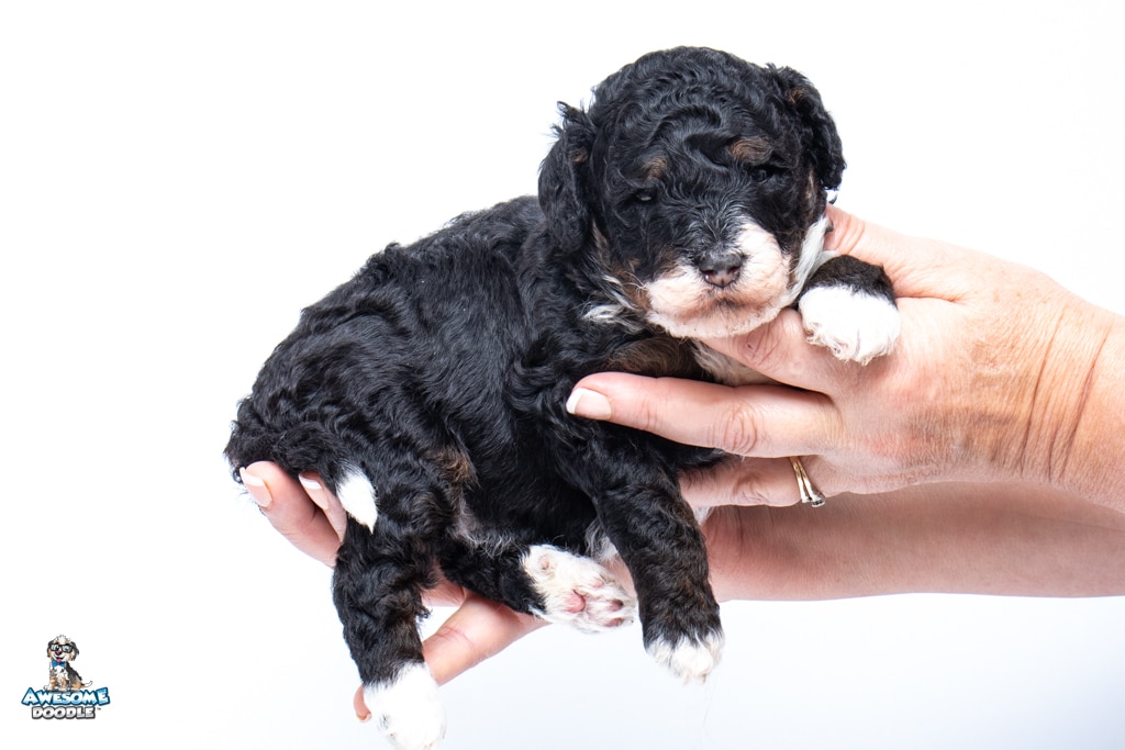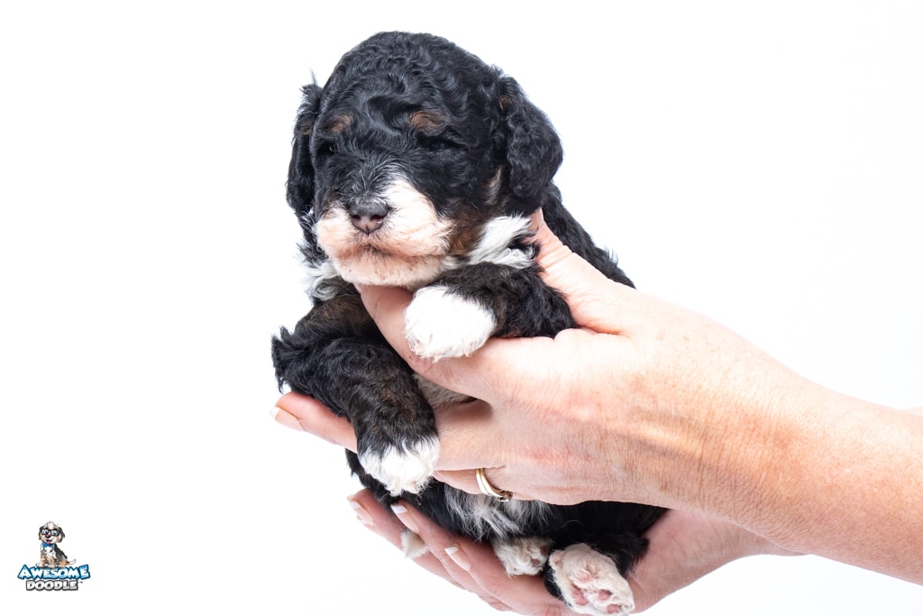 Truffles is a female Black Tri-Color F1b BerneDoodle puppy.