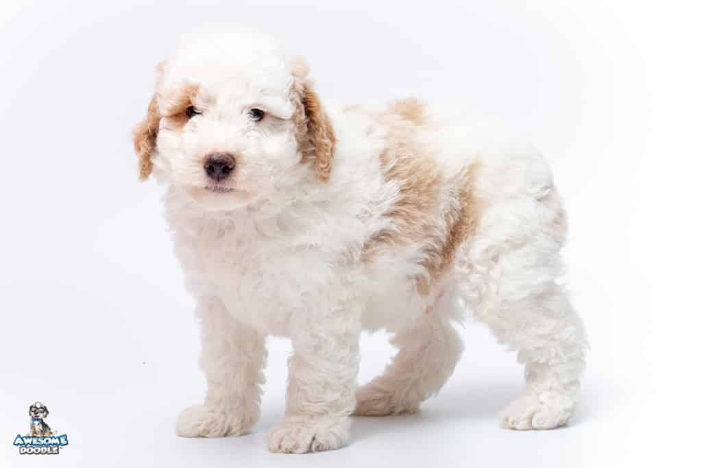 Ezra is a male Apricot Bi-Color F1b BerneDoodle puppy.