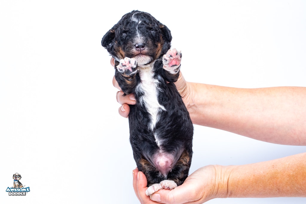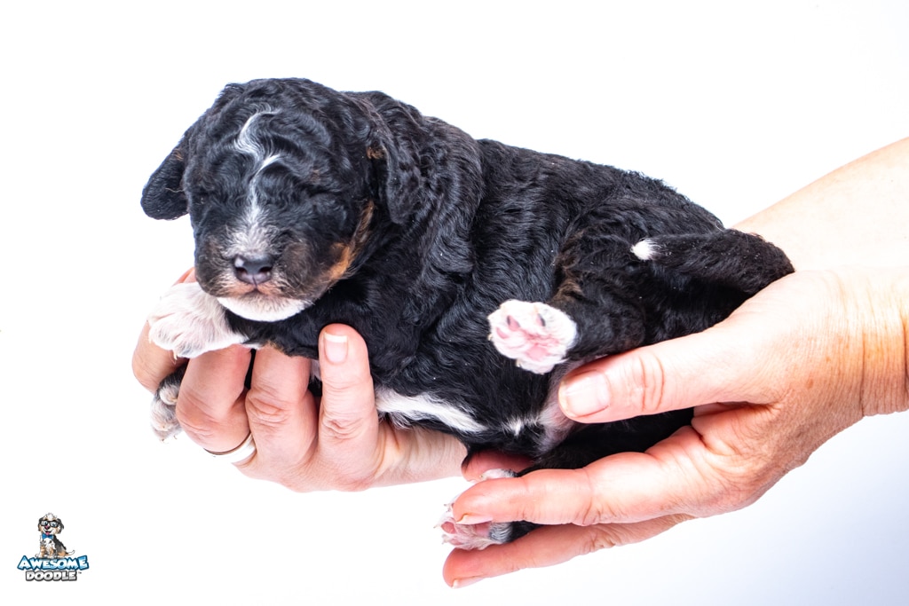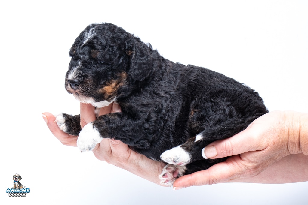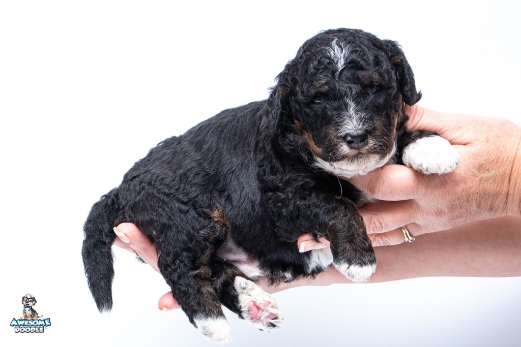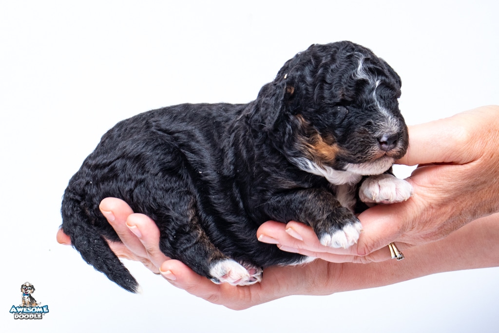Finn is a male Black Tri-Color F1b BerneDoodle puppy.