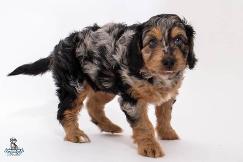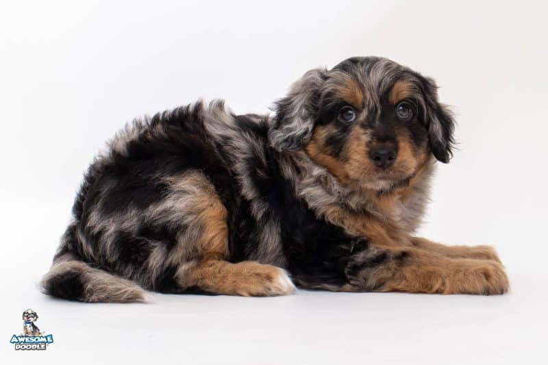 Congrats to: Kyle and family from Noblesville, Indiana on this Phantom Blue Merle F1 AussieDoodle puppy.