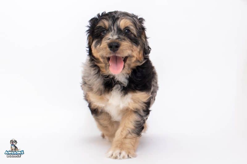 Congrats to: Chardonnay and family from Sacramento, CA on this Phantom Blue Merle F1 AussieDoodle puppy.